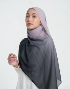 Hijab gradasi abu-abu elegan yang memberikan kesan lembut dan sophisticated pada penampilan. Perpaduan warnanya yang halus membuat tampilan terlihat modern, simpel, namun tetap berkelas untuk berbagai kesempatan.